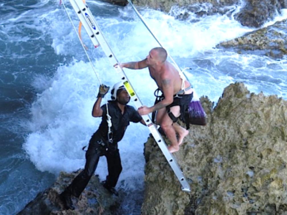 ,,Wij kregen afgelopen zondag omstreeks 16.30 uur te horen dat er snorkelaars bij Coral Cliff in de problemen waren geraakt door de ruwe zee. Het lukte de mannen niet om tegen de rotsen op te klauteren en zo weer aan land te komen. Buurtbewoners hadden een ladder in het water laten zakken, maar de mannen konden nog steeds niet naar boven komen”,
