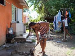 Williany bouwde het huisje toen ze elf jaar geleden zwanger raakte van Kendrish. De eerste stenen werden gelegd op een betonnen fundering, toen was het geld op. De vader van haar kinderen verdween niet helemaal uit beeld – er kwamen nog drie kleintjes – maar komt alleen langs als hij wat geld heeft verdiend. Dat is niet vaak, zegt ze. “Hij werkt in de bouw, maar heeft mede door de coronacrisis al anderhalf jaar geen werk meer. Heel af en toe brengt hij zelfgevangen vis. Die deelt hij dan met ons en met mijn moeder.”