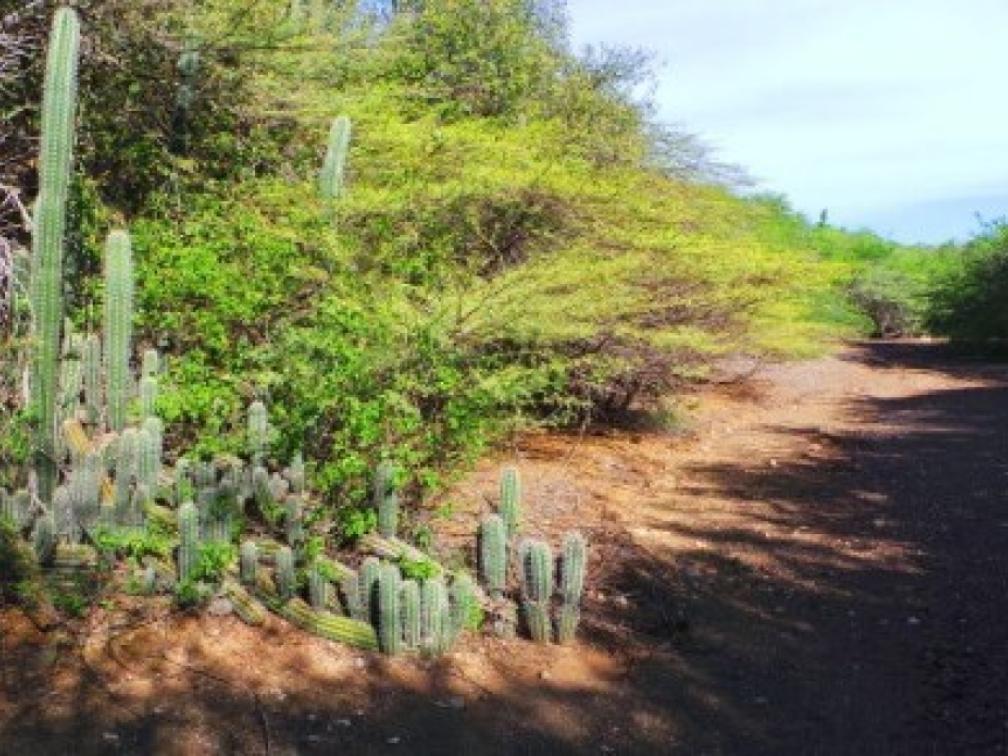 Op een vrijdag in de namiddag, laad ik mijn dochters in de auto met de boodschap: "We gaan op avontuur!" Via via gehoord over een wandelroute in Roi Rinkon. Nooit geweest en heel benieuwd. Enthousiast rijden we via Santa Maria naar Hato Airport. Voorbij de luchthaven, tegenover de Freezone, kun je direct na het aflopen van de middenberm, linksaf een pad inslaan. De slagboom aan de rechterkant blijkt gesloten, maar via de linker baan kunnen we toch het terrein oprijden. De weg leidt ons door een bos en op het punt waar de droge rivierbedding - de Rooi - begint, is de voortgang afgesloten door grote rotsblokken. Hier parkeren we de auto en begint ons avontuur.